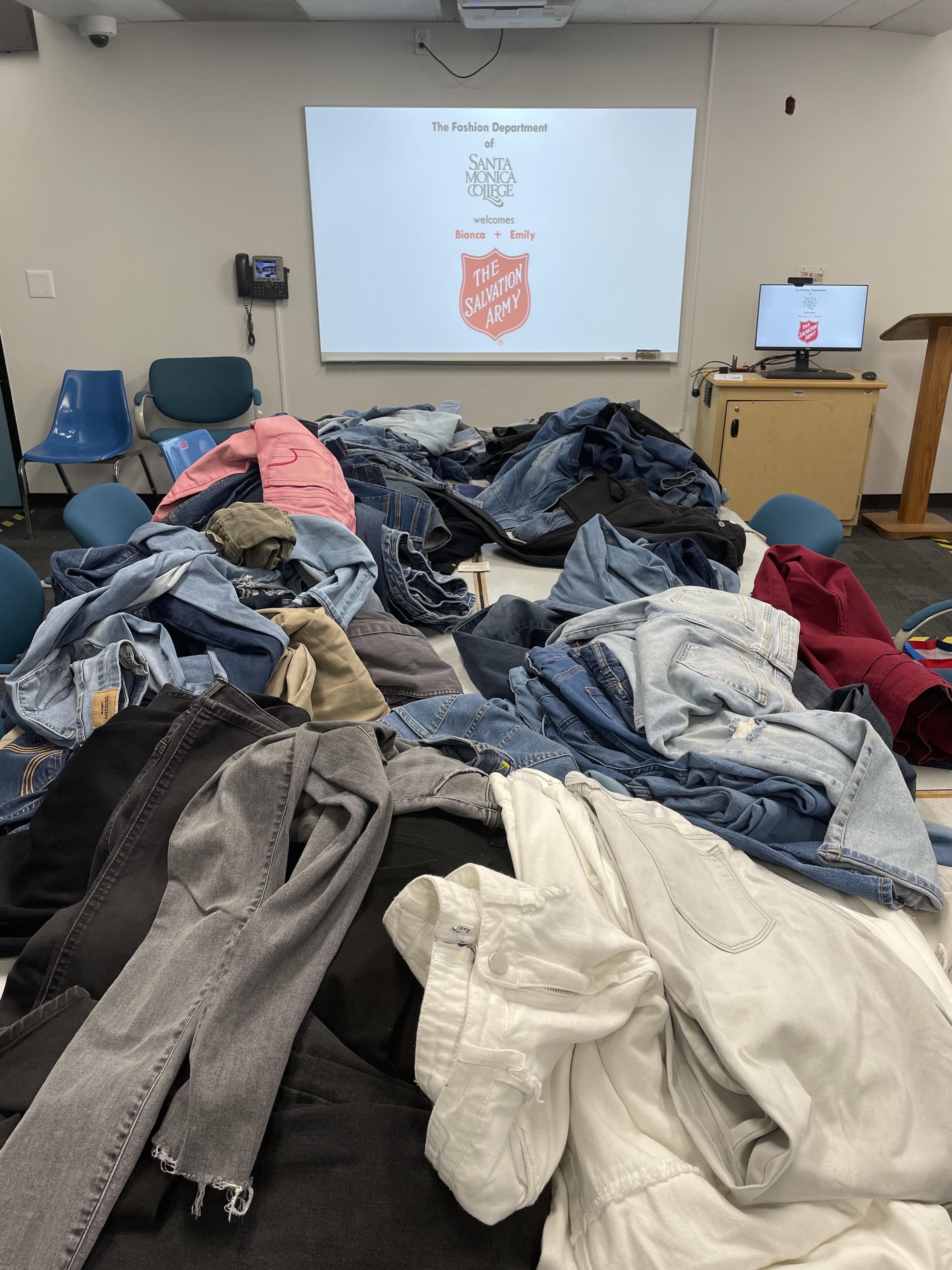 The proposition was that The Salvation Army would donate 150 pairs of denim jeans to the fashion students at SMC.